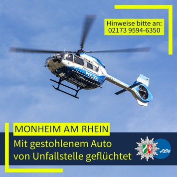 Monheim am Rhein (ots) - In Monheim am Rhein hat die Polizei am Dienstag (13. Januar 2026) mit einem Großaufgebot nach einem Mann gefahndet, der mit einem entwendeten Auto von einer Unfallstelle geflüchtet war. Hierbei setzte sie auch einen ... Lesen Sie hier weiter...